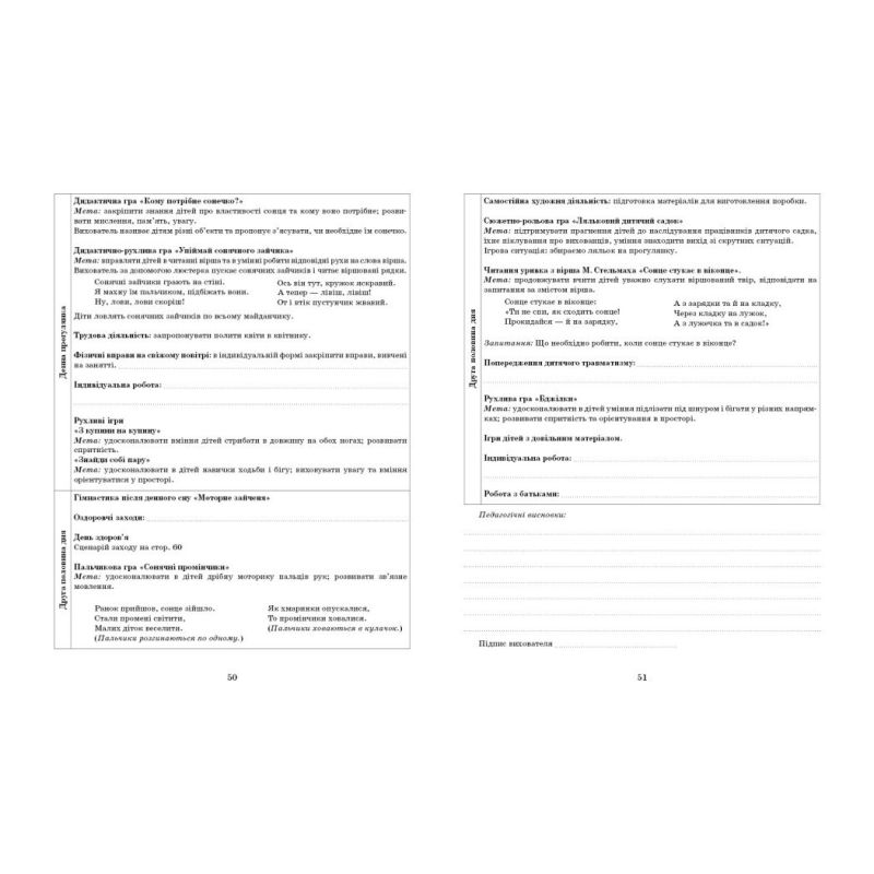Руководство можно использовать в качестве рабочего календарного плана, в который необходимо вписывать индивидуальную работу, трудовую деятельность, работу по предупреждению детского травматизма и работу с родителями воспитанников.