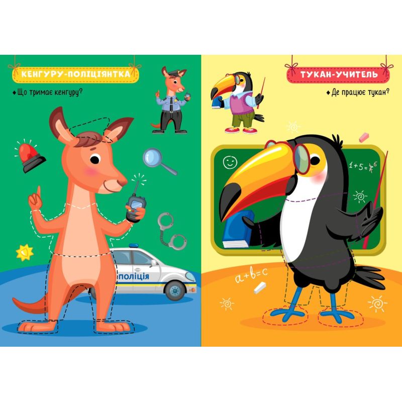На страницах этой книги малыш не только познакомится с забавными зверьками, но и откроет для себя удивительный мир профессий, без которых не обойтись: от спасателя и врача до строителя и военного. Пользуясь наклейками и образцом, ребенок должен надеть животных в соответствии с их занятиями, а также доклеить предметы, которыми они пользуются во время работы. Симпатичные забавные зверьки обязательно понравятся малышу, а яркие наклейки-одевалки не только обеспечат интересный и познавательный досуг, но и помогут развить мелкую моторику, внимание и логическое мышление.