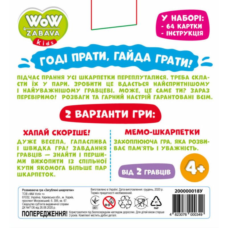 Затерянные носки. Развивающая игра для детей от 3-х лет Мій успіх+ издательства Ранок можно купить в интернет-магазине Книгован со скидкой или с бесплатной доставкой по Украине.