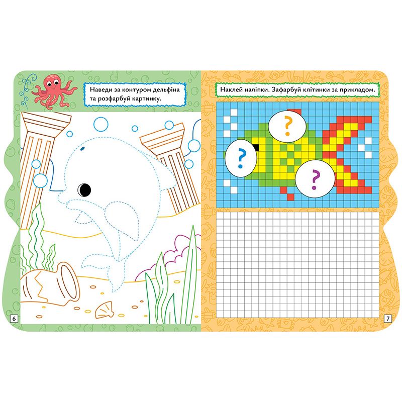 Це серія книжок для справжніх дослідників та любителів творчості. Цікаві завдання, героями яких є nbsp; веселі й кумедні тваринки, що спонукатимуть малечу до застосування логіки, фантазії та уваги. Яскраві ілюстрації, які можна доповнити за допомогою кольорових наліпок, сприятимуть розвиткові уяви естетичного смаку малюків. Завдяки цим книжечкам ви разом із дитиною зможете відчути собі шукачами пригод і відкриттів.