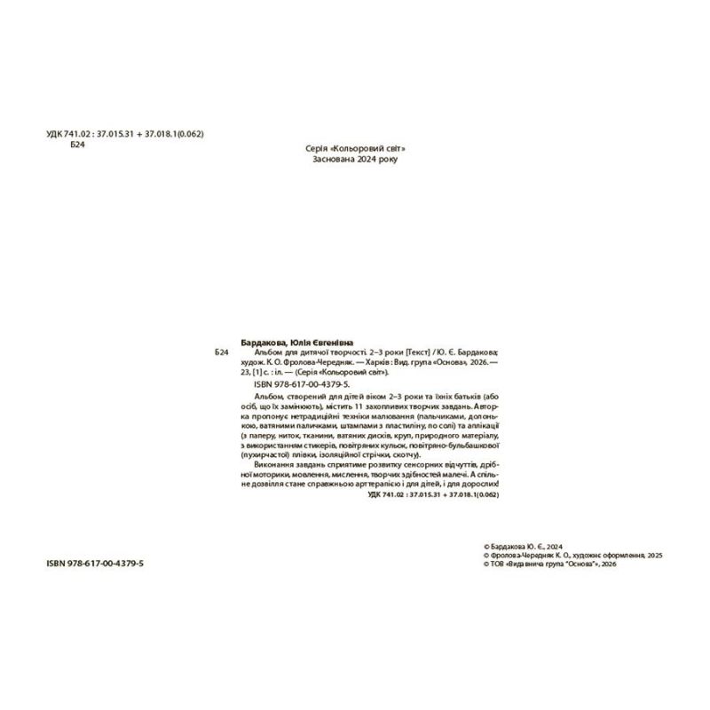 Альбом для детского творчества Основа 2-3 года Юлия Бардакова издательства Основа можно купить в интернет-магазине Книгован со скидкой или с бесплатной доставкой по Украине.
