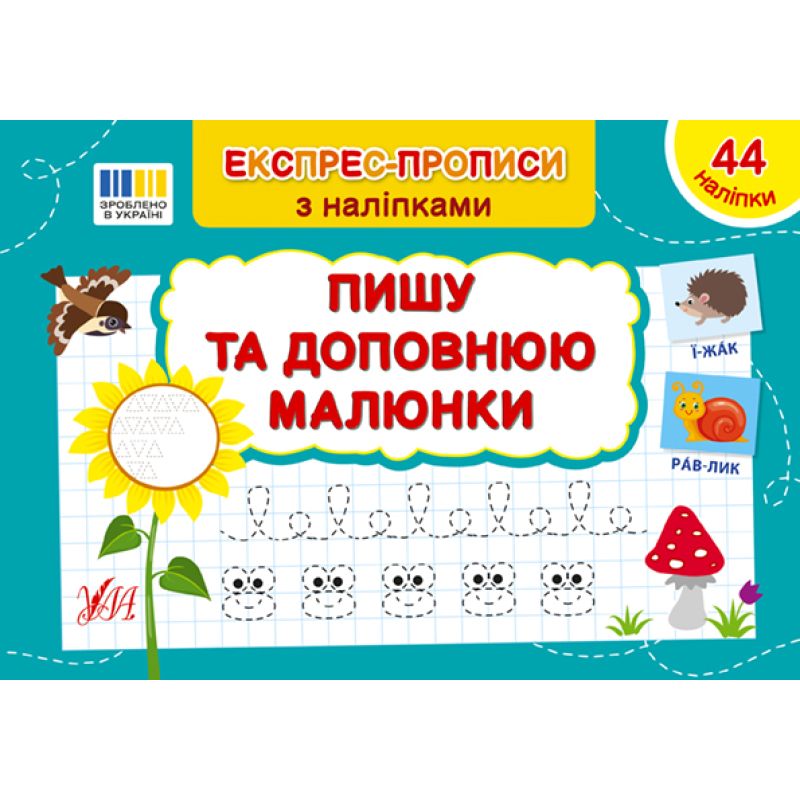 С книгой "Пишу и дополняю рисунки" ребенок будет наводить рисунки по пунктиру, а затем самостоятельно дорисовывать каждое изображение по подсказкам. Вместе с тем малыш потренируется рисовать различные линии, фигуры и узоры по клеточкам, а также читать по слогам и клеить соответствующие изображения.
