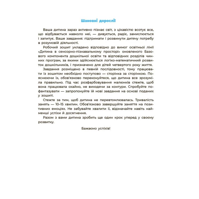 Рабочая тетрадь составлена в соответствии с требованиями образовательной линии «Ребенок в сенсорно-познавательном пространстве» обновленного Базового компонента дошкольного образования и соответствующих разделов действующих программ, по которым осуществляется логико-математическое развитие дошкольников.