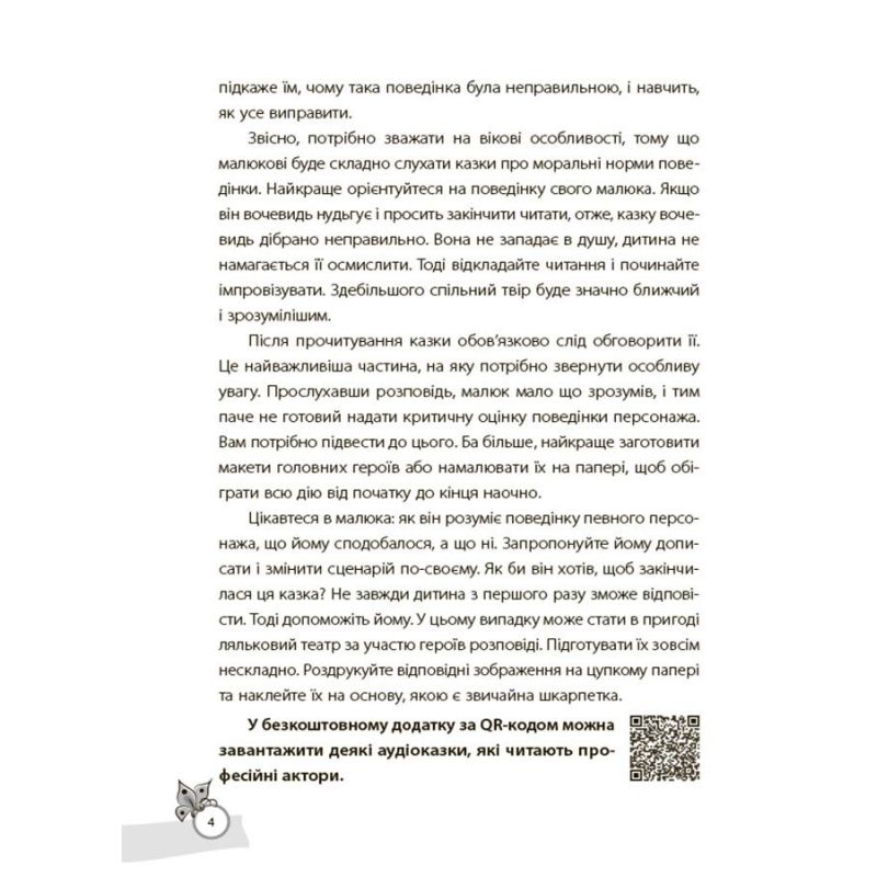 В бесплатном приложении содержатся аудиосказки которые можно загрузить, используя QR код на обложке.