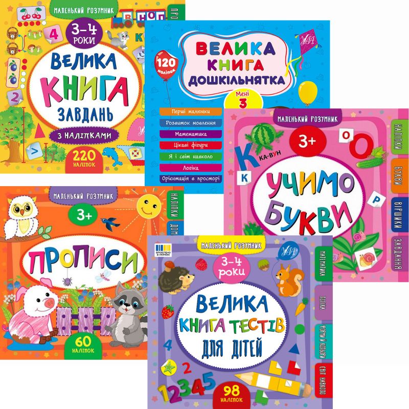 1. Маленький умник – Большая книга задач с наклейками. 3-4 года