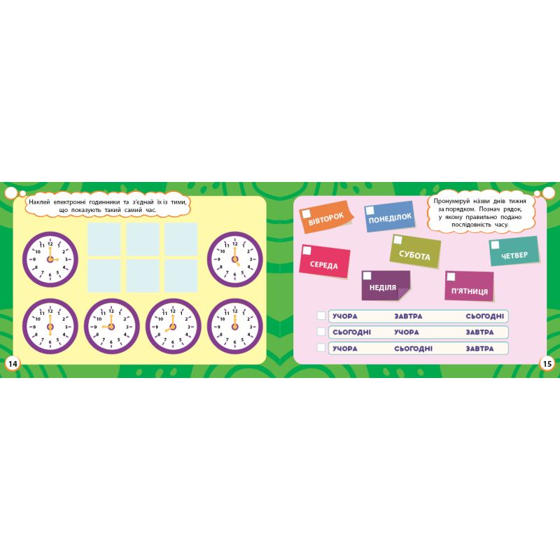 С книгой «Время и времена года» ребенок интересно и с пользой проведет время, ведь будет разгадывать тематические ребусы, искать различия, различать время на часах, а также находить лишнее на рисунках или дополнять их. Вместе с тем малыш будет наводить по пунктиру, раскрашивать рисунки с временами года и временем суток и использовать наклейки в заданиях. Работа с изданием поможет улучшить мелкую моторику пальцев рук, разовьет внимание и воображение, потренирует память и усидчивость, воспитает старательность и аккуратность при выполнении заданий.