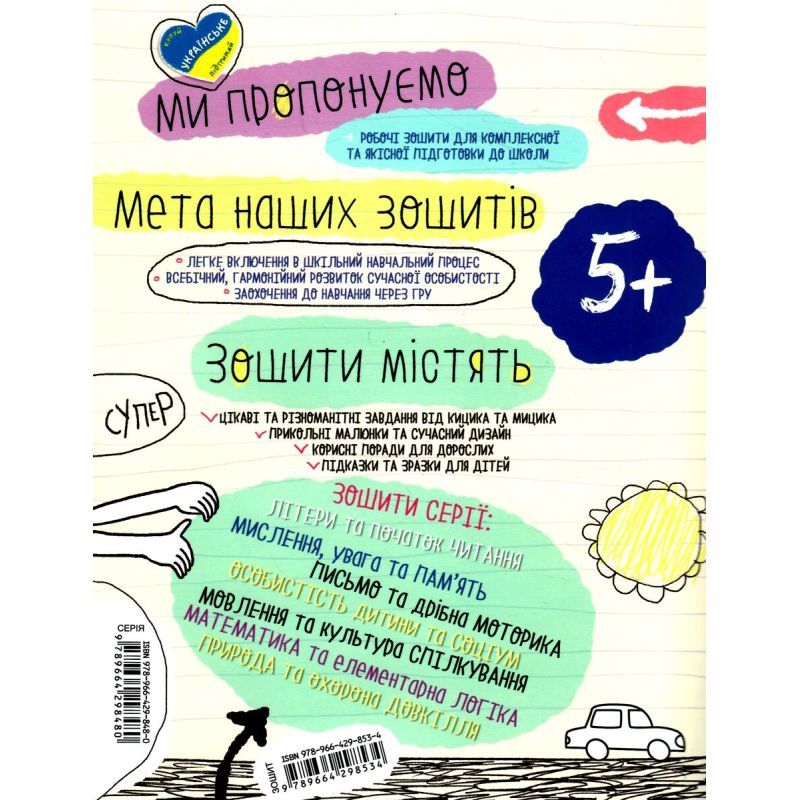 Руководство одобрено в 2023 году Министерством образования и науки Украины для групповой и индивидуальной работы с детьми старшего дошкольного и младшего школьного возраста. Уникальная по содержанию и методическому наполнению рабочая тетрадь – стильная и современная, сделанная с любовью и знанием своего дела ведущими отечественными специалистами.