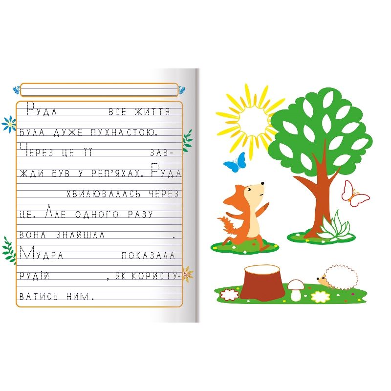 В книге представлены тексты с пропущенными словами, чтобы маленькие писатели могли самостоятельно "дописать" их. А чтобы еще и потренироваться писать печатные буквы, все буквы поданы пунктиром.