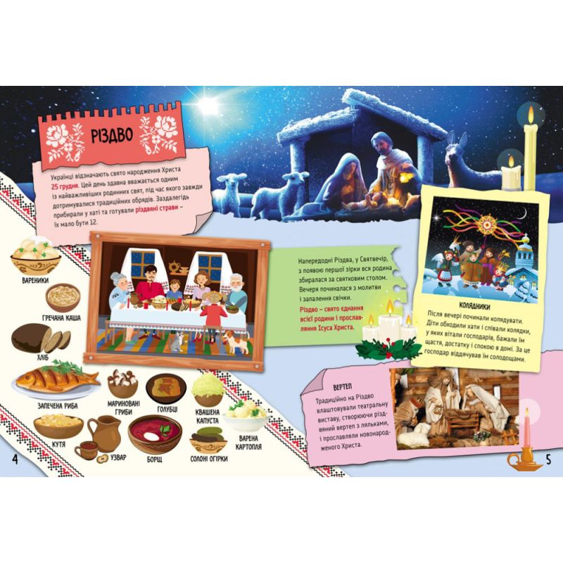 Книга «Праздничные обычаи в Украине» ознакомит детей с народными украинскими праздничными обрядами, которые дошли до нас с давних времен и остались доброй традицией и сегодня. Дети узнают интересные факты о Рождестве, Крещении, Сретении, Пасхе, Троице, праздниках Ивана Купала, Покрова Богородицы, День Святого Николая и т.д. Думаем, и взрослые смогут открыть для себя что-нибудь новенькое!