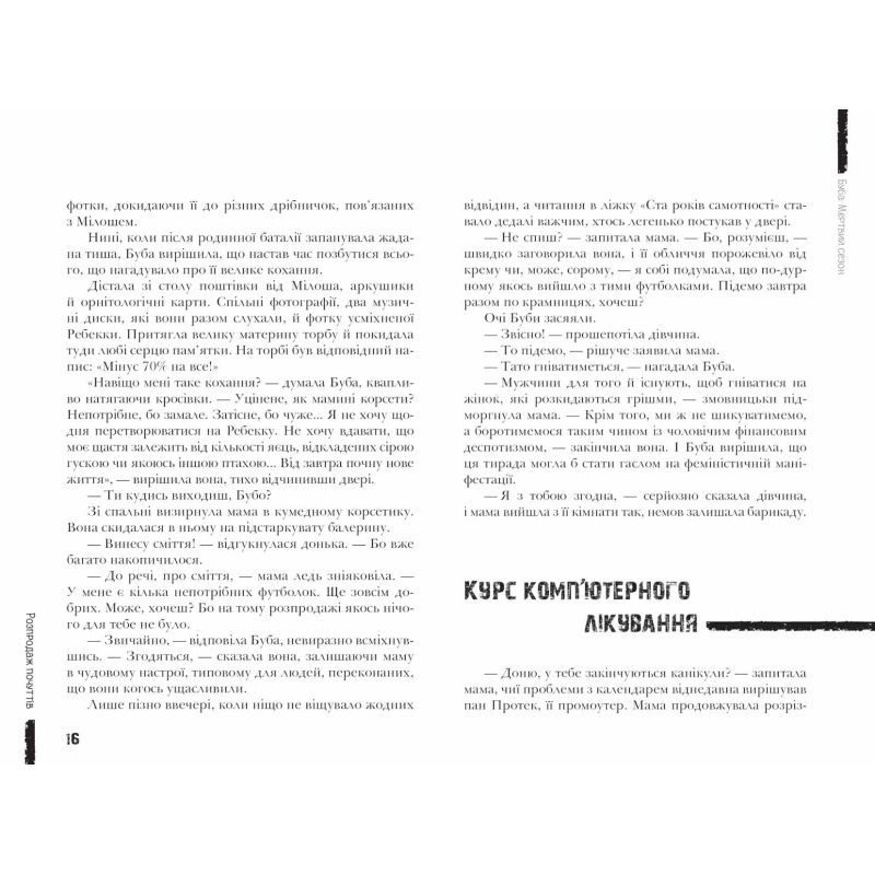 Кажется, что весь мир сговорился против Бубы. Любимый Милош увлекся очаровательной Ребеккой, рядом нет лучшей подруги, а дедушка ушел в виртуальный мир интернет-чатов. Мама, как всегда, занята собственной карьерой, зато на смену ей появляется бабушка Рита с целым чемоданом полезных советов... Мертвый сезон, да и только! Но вскоре Буба попадает в приключения: находит нового друга Сироту, получает известие от пропавшей подруге, а еще играет в бридж со зловещим Юзефом по кличке Сталин и даже... проводит ночь в полиции. А кроме того Буба становится свидетелем чудес, которые разгоняют тучи над их домом.