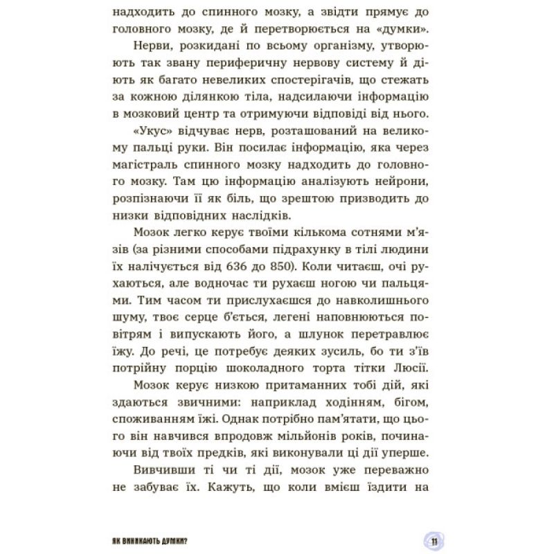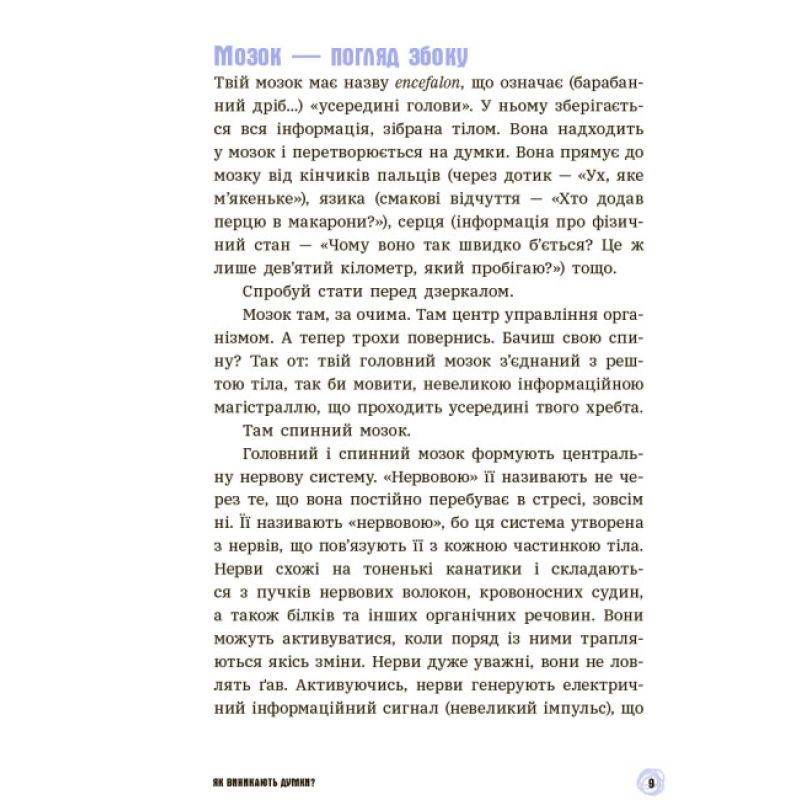 Просто и с юмором авторы говорят о сложных вещах: искусственном интеллекте, функциональной магнитно-резонансной томографию, передачу нейронами электрических импульсов… А еще читателям будет интересно узнать: кто и как управляет мной: я или мозг? можно ли измерить интеллект? можно ли обмануть мозг? зачем нужен сон и какова его важность для мозга?