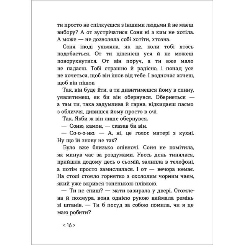 Тебе пятнадцать, твоя жизнь неинтересна, ты живешь в маленьком городке и ждешь лето, когда можно не видеть одноклассников и быть наедине с собой и несколькими «друзьями». И вот появляется ОН — и ты влюблена и безумно ждешь взаимности. Но в то же время приходит ОНА — старше тебя, несколько похожа и непохожа на тебя саму. Помощница, советчица, ведьма или проводница во взрослость? Повесть рассказывает об одном лете 15-летней Сони — одинокой и замкнутой подростке, оказывающейся перед выбором, переживает первую влюбленность и ищет свое место в жизни.