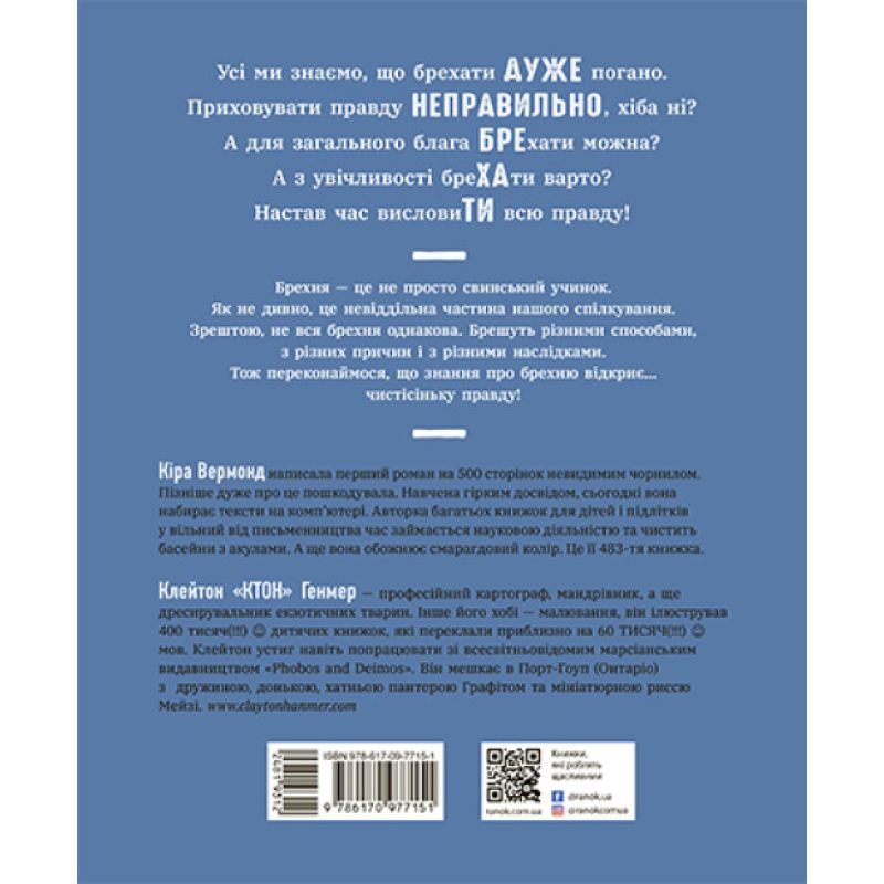Докопаемся до правды! Потому что это очень интересно и весело: слушать, как кто-то лжет и как обнаруживают лжеца! А тут еще и классные цветные иллюстрации Клейтона Генмера и куча немыслимых, причудливых историй и невероятных фактов. Скучно не будет не только детям, для которых создана эта книга, но и взрослым!