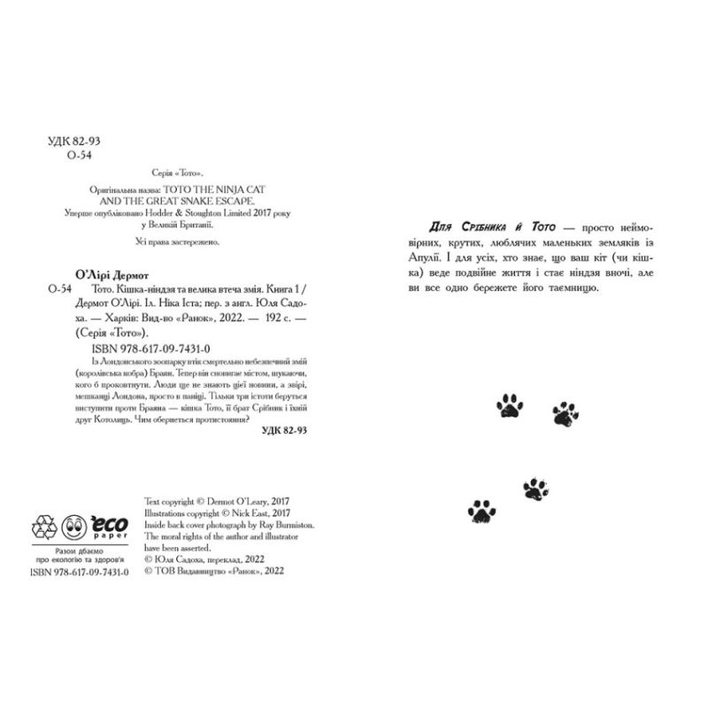 Тото. Кошка-ниндзя и большой побег змея. Книга 1 Дермот О'Лири