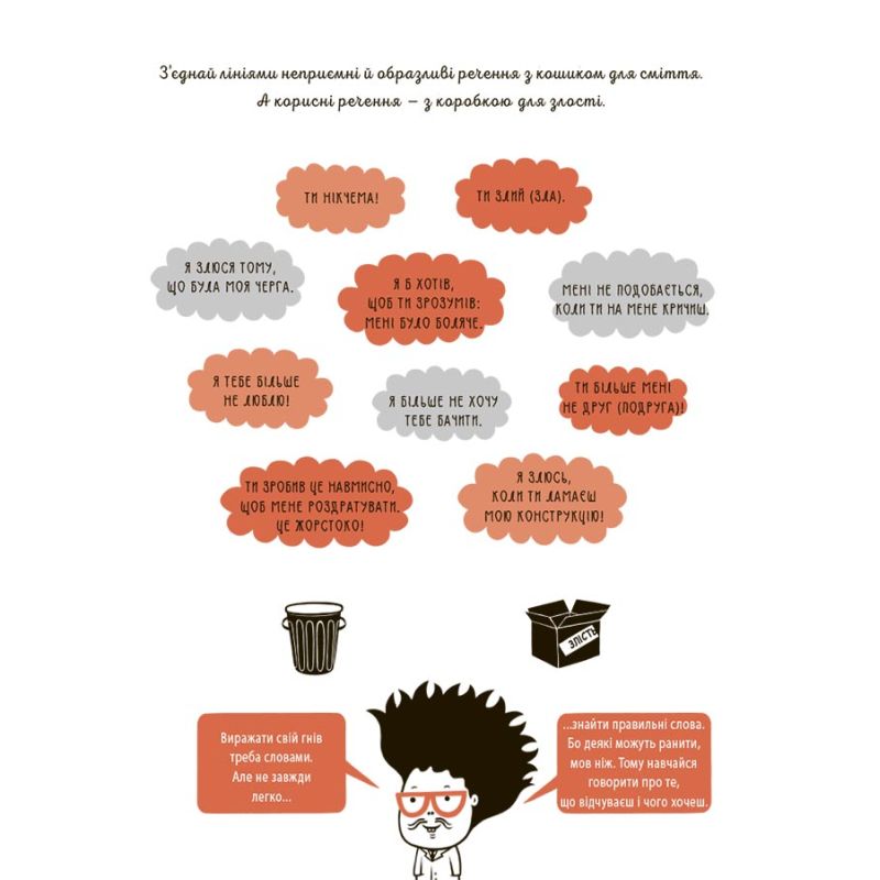 Развлекательные занятия, веселые игры, интерактивные задания и наклейки – все это ждет читателей внутри книги. Благодаря этому дети научатся укротить свой гнев, лучше понимать себя, других и окружающий мир.