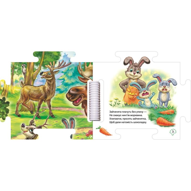 Не нужно больше покупать отдельно книгу, отдельно набор пазлов, потому что наша книга-пазл стала отличным сочетанием этих двух видов детского досуга. Вместе с героями этой книги поздравляем Вас в уютной атмосфере тенистого леса, картинка которого состоит из восьми больших пазл-листов.
