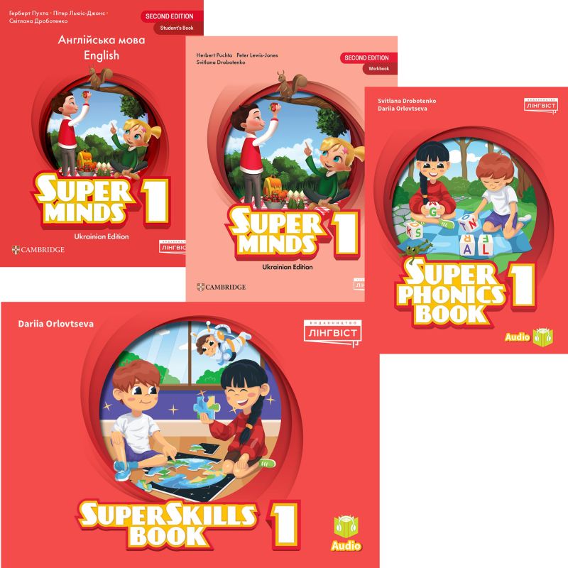 4. Super Skills Book – компонент обучающего курса Super Minds Ukrainian Edition. Пособие дает прекрасную возможность обогатить словарный запас, отработать и закрепить грамматический материал и превратить обучение в полезную игру. Разнообразные упражнения помогут научиться понимать грамматические формы и структуры в контексте. Аудиосопровождение сделает процесс обучения интересным и поможет школьникам усовершенствовать умение аудирования. А секция Games позволит обобщить знание лексического материала по темам указанного уровня. Пособие содержит материалы, полностью соответствующие учебнику Super Minds 1 Student's Book и концепции Новой Украинской Школы.