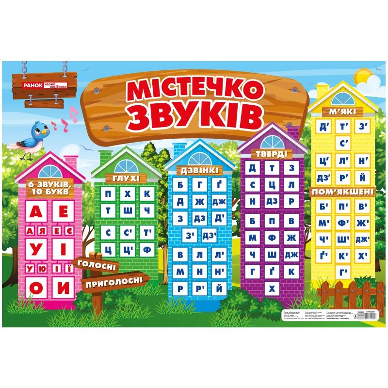 Плакат для оформления интерьера по программе новой украинской школы "Городок звуков" создан для использования на уроках украинского языка.