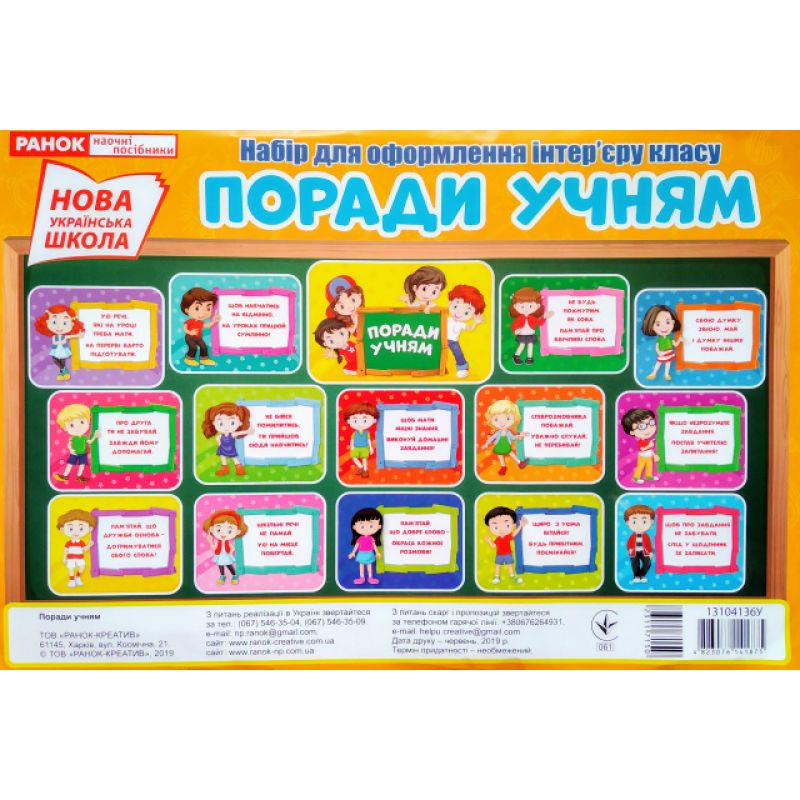 "НУШ. Советы ученикам. Набор для оформления интерьера класса" включает не только учебные моменты, но и воспитательный процесс, помогает понять потребности детей и помочь создать условия для самостоятельного освоения мира.