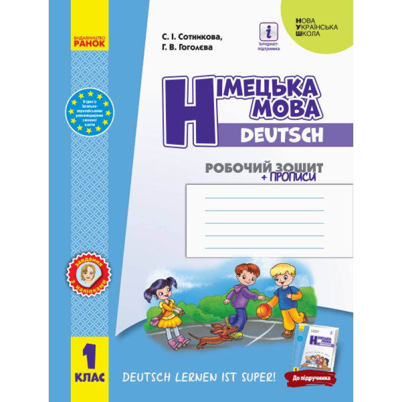 Пособие "НУШ. Рабочая тетрадь: Немецкий язык 1 класс (Сотникова)" созданное по программе «Немецкий язык» для 1 класса к учебнику под авторством: Сотникова С.И., Гоголева Г.В.