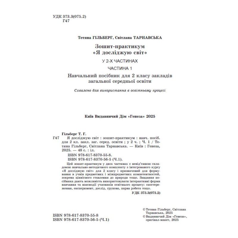 НУШ-2 Тетрадь-практикум Генеза Я исследую мир 2 класс Часть 1 Гильберг (2025 год) издательства Генеза можно купить в интернет-магазине Книгован со скидкой или с бесплатной доставкой по Украине.