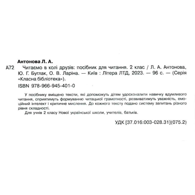 НУШ. Читаем в кругу друзей: пособие для чтения. 2 класс. Леся Анонова, Юлия Буглак, Оксана Ларина