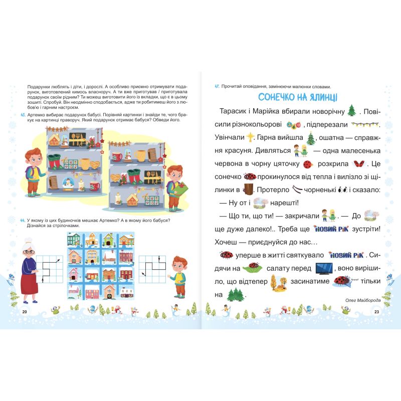 «Снеговичок» – это тетрадь, которая сочетает зимний отдых с интеллектуальным развитием и атмосферой рождественско-новогодних праздников. Она содержит разнообразные задания, кроссворды, раскраски, лабиринты, а также вкладку с простыми в изготовлении поделками. На форзацах есть фото готовых поделок, рождественская раскраска и QR-код к видео «Безопасные зимние каникулы» и фото готовых поделок.