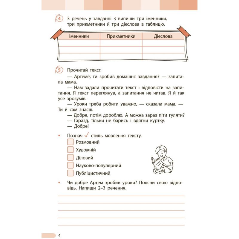 Пособие соответствует Типовой образовательной программе, разработанной под руководством Р. Б. Шияна, и является составной частью учебно-методического комплекта, созданного на базе учебника «Украинский язык и чтение» для 3 класса авторов Инны Большаковой, Марины Пристинской. Издание предназначено для индивидуального выполнения заданий учениками в рамках формирующего и уровневого оценивания, позволяет определить уровень овладения учениками и ученицами учебным материалом, выявить образовательные трудности и спланировать дальнейшую индивидуальную или групповую педагогическую поддержку. Материал представлен с учетом психологических особенностей третьеклассников и третьеклассниц.