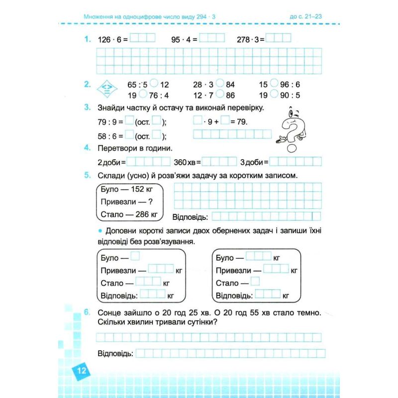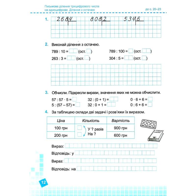 Тетрадь предназначена для самостоятельной, коллективной и индивидуальной работы учащихся на уроках математики по учебнику Листопад Н.П. Математика. 4 класс: – Киев: Орион, 2021.