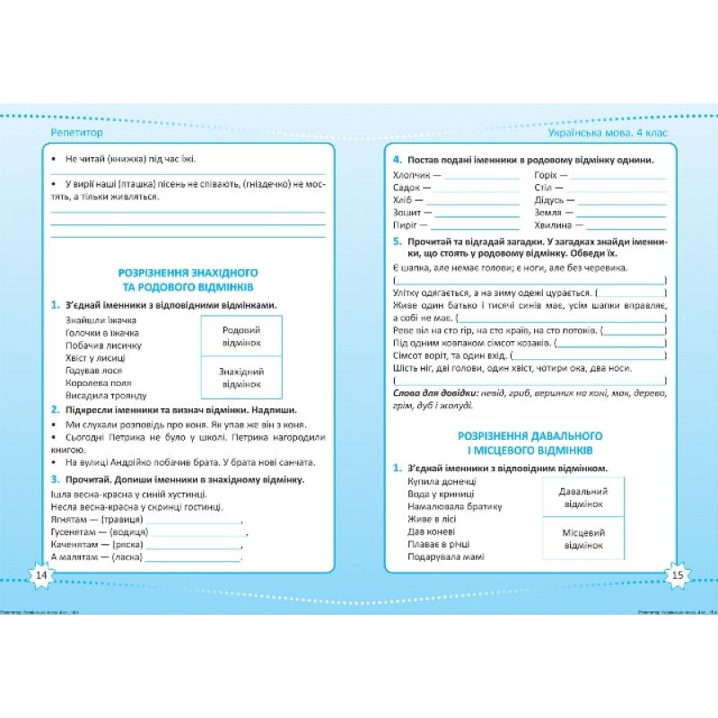 Серия книг "Репетитор. Украинский язык" предназначена помочь ребенку овладеть навыками письма, чтения, различения языковых явлений. Задания направлены на изучение букв, звукового состава речи, составления, а также на различение частей речи, предложений разных видов.