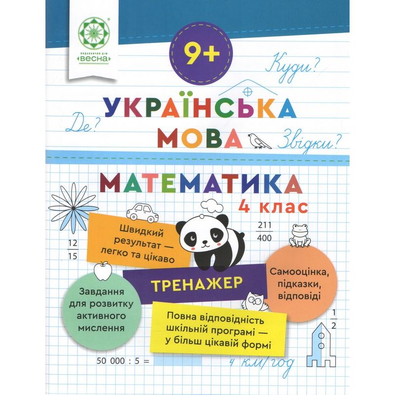 Издание составлено в соответствии с типовыми образовательными программами по украинскому языку и математике для учащихся 4 классов общеобразовательных учебных заведений (О. Я. Савченко и Р. Б. Шияна). Тренажер содержит задачи ко всем изучаемым темам дисциплин. Материал издания поможет повторить изученное, применить свои знания на практике, осознать собственные учебные достижения, устранить пробелы. Наличие ответов и подсказок к задачам способствует развитию самоконтроля и самооценки у ребенка.