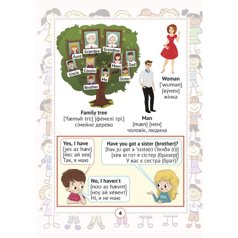 Англо-украинский визуальный словарь содержит около 2000 слов и словосочетаний по 68 лексическим темам. Для лучшего усвоения речевого материала предлагаемые слова и сочетания слов проиллюстрированы рисунками. лексический материал подобран в соответствии с действующими программами иностранных языков новой украинской школы. Правила чтения, таблица неправильных глаголов и транскрипция (запись произношения английских слов украинскими буквами) значительно облегчат изучение английского языка.