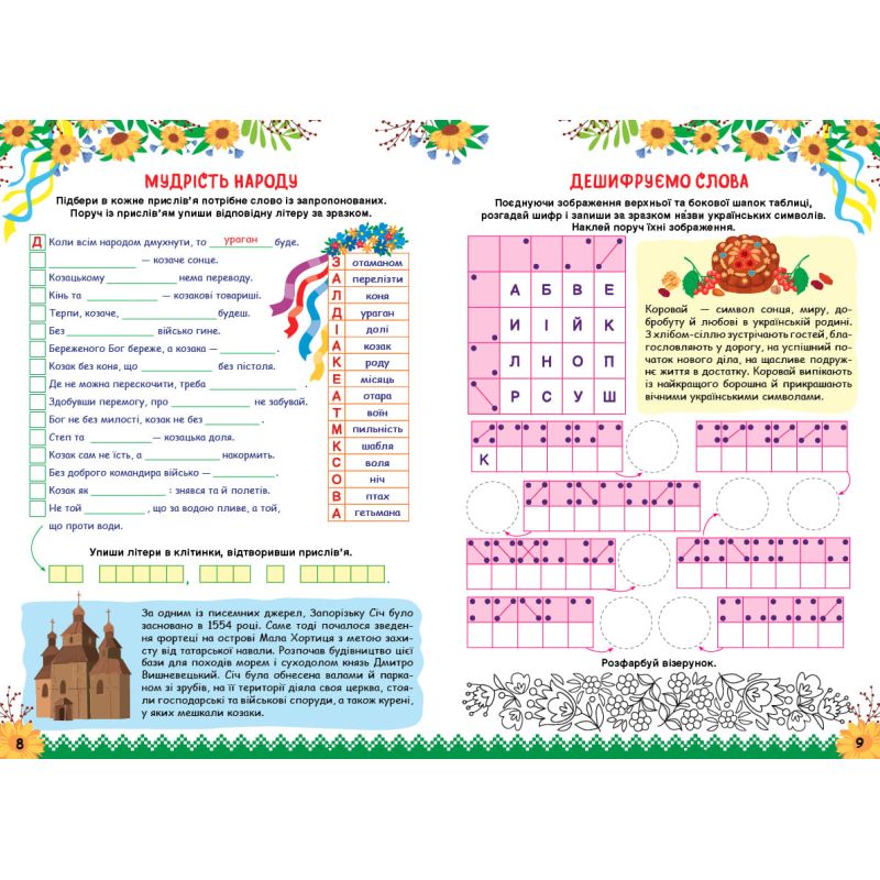 Любовь к Родине, как и к семье, появляется и воспитывается с детства. Увлечение красотой родной земли, наслаждение благозвучием языка, уважение символов и памятников, забота о ближнем, гордость за украинское прорастает с осознанием себя частицей страны. Эта книга поможет в этом и откроет интересные горизонты познания, предложит необычные задачи на украинскую тематику, рассчитанные на детей от 10 лет, — кроссворды, ребусы, шифрограммы, судоку, раскраски, математический диктант, задачи для развития внимания, улучшение дикции и тренировки. ти.