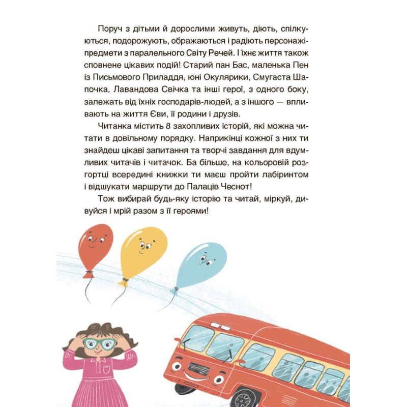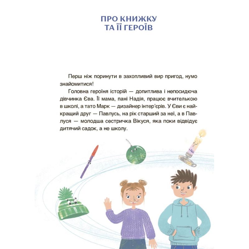 Знакомьтесь, это Ева, любознательная и непоседливая героиня серии читанок. На страницах книг читателей ждут рассказы об увлекательных приключениях девочки и ее друзей, рядом с которыми живут, действуют, общаются, путешествуют, обижаются и радуются персонажи из параллельного Мира Вещ: юные Очки, Полосатая Шапочка, Лавандова Свеча и другие герои. Каждая из трех читанок содержит 8 увлекательных историй, которые можно читать в произвольном порядке. В конце каждой истории подобраны интересные вопросы и творческие задачи для вдумчивых читателей и читательниц.
