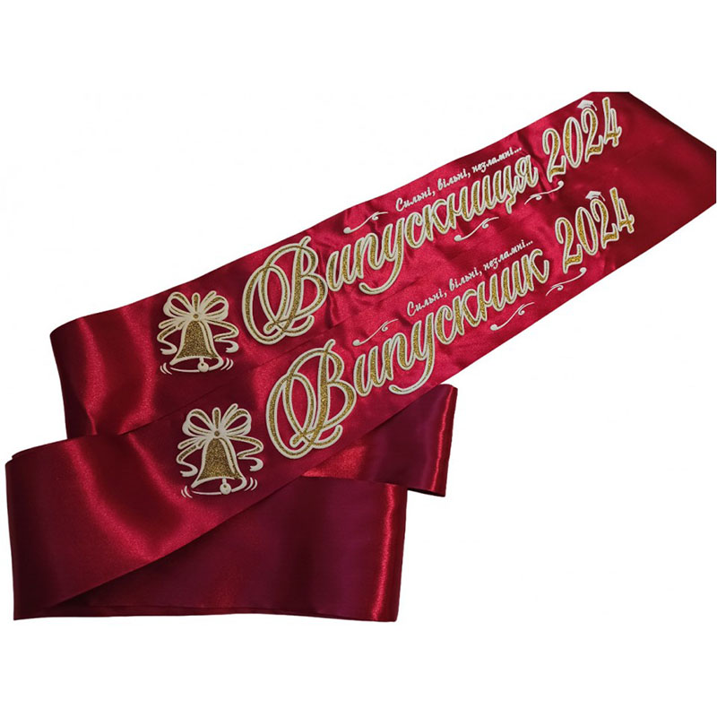 Выпускница 2024 и Выпускник 2024: Бордовая выпускная лента с золотым глиттером изготовлена с применением новейших технологий. Символическая наградная лента производится из атласа. Длина аксессуара составляет 190 см, ширина – 9,5 см. Выпускные ленты производятся в разных цветах и каждый класс, как правило, выбирает свой. Атласная бордовая лента на выпускной праздник отлично смотрится в сочетании с любым костюмом или выпускным платьем.