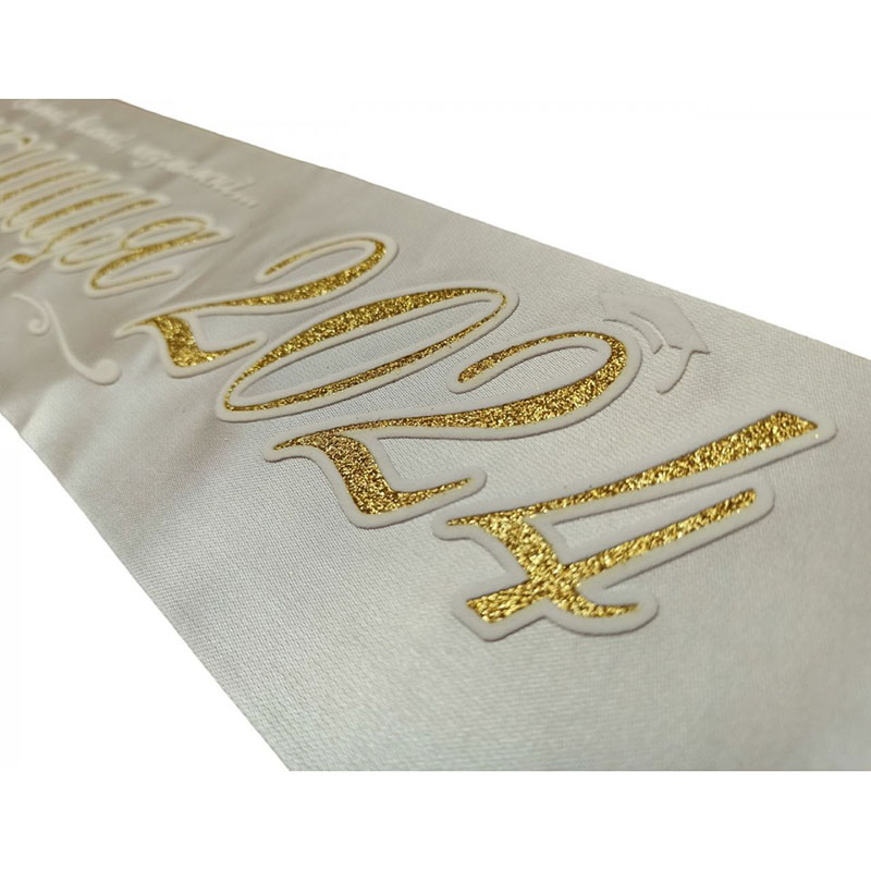 Выпускница 2024: Молочная выпускная лента с золотым глиттером - 3 шт
