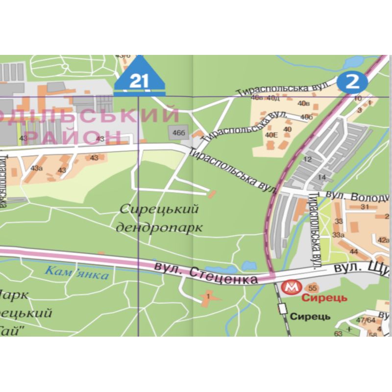 На современной карте Киева подробно отражена дорожно-уличная сеть и городская застройка, представлено более 2 500 актуальных названий улиц с номерами зданий, границы и названия административных районов Киева, исторические названия частей города, станции метрополитена, показаны также объекты инфраструктуры города (вокзалы, аэропорт, гостиницы, рынки, торговые центры, музеи и т.д.) и достопримечательности, которые можно посетить.