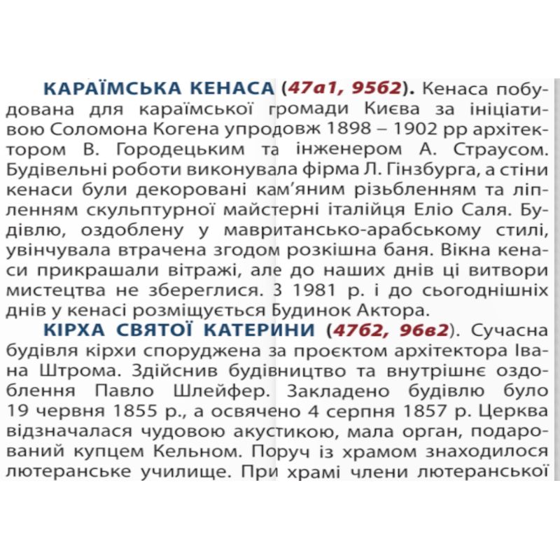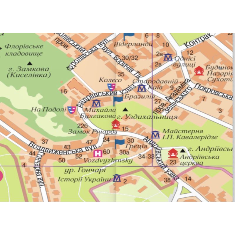 Дополняют содержание атласа описания достопримечательностей Киева с фотографиями, тематический указатель и указатель улиц, что позволяет легко найти нужную улицу или объект.