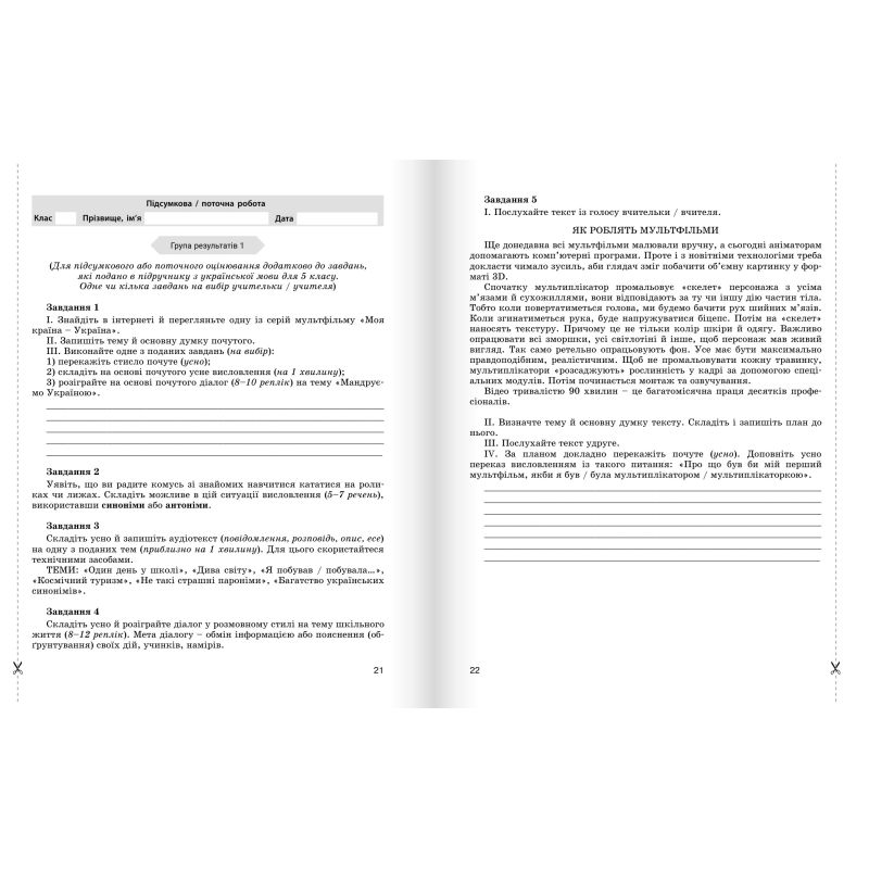 Украинский язык. 5 класс НУШ. Контроль результатов обучения + Оценка по группам результатов