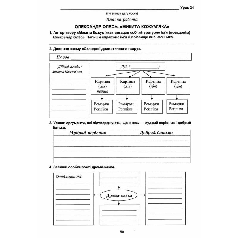Тетрадь с печатной основой составлена в соответствии с действующей модельной учебной программой украинской литературы авторского коллектива Яценко Т. А. и учебником А. Калинич, С. Дячок «Украинская литература. 5 класс».