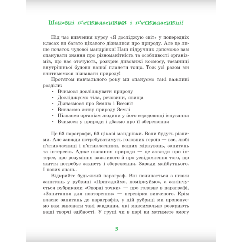 Учебник «Узнаем природу» — это 63 параграфа, 63 интересных путешествий для пятиклассниц и пятиклассников. Именно таков был авторский замысел. Не просто учиться, а путешествовать, открывая мир и себя в этом мире.