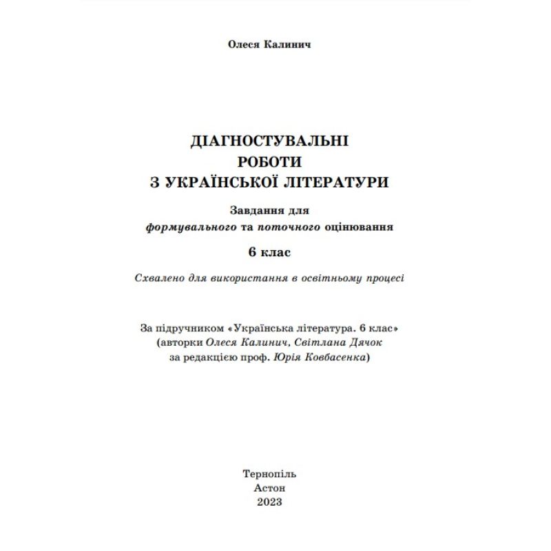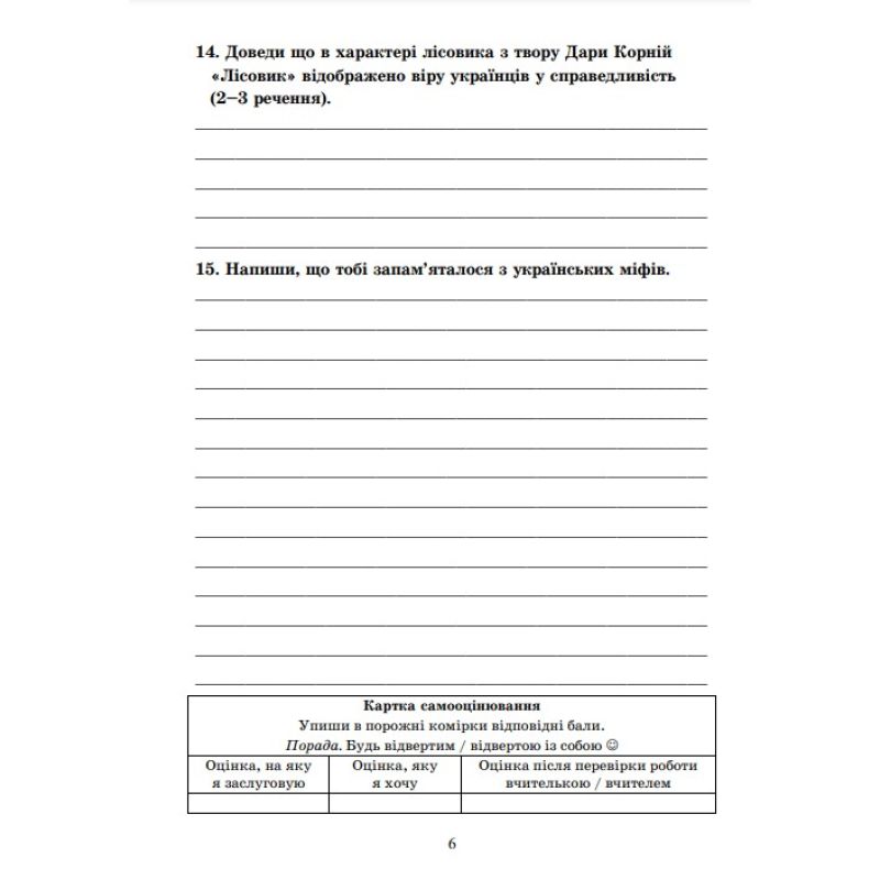Диагностические работы по украинской литературе: задачи для формовочного и текущего оценивания. 6 класс