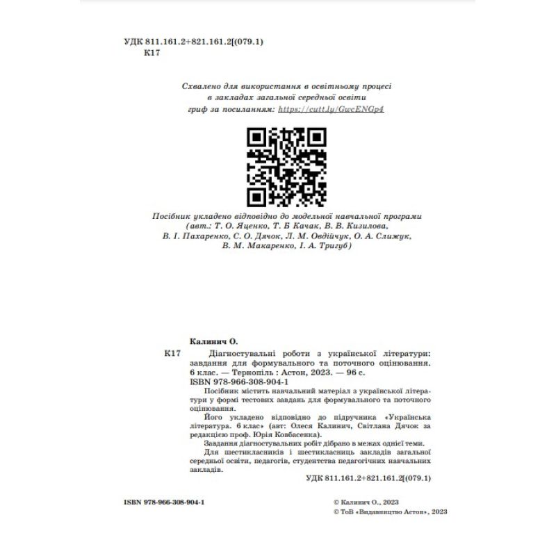 Его составлено в соответствии с учебником «Украинская литература. 6 класс» (авт: Олеся Калинич, Светлана Дячок под редакцией проф. Юрия Ковбасенко).
