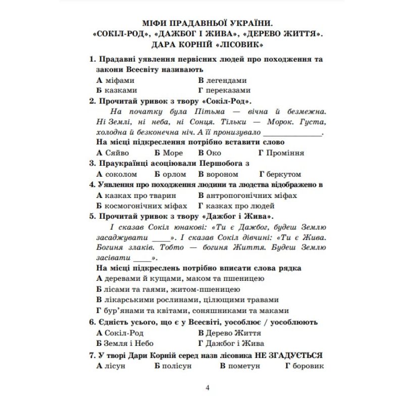 Руководство содержит учебный материал по украинской литературе в форме тестовых заданий для формовочной и текущей оценки.
