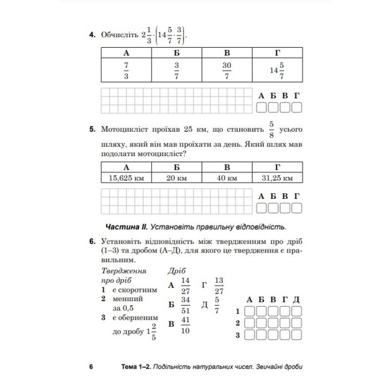 В пособии представлены тематические и годовая диагностические работы по математике в формате ЗНО для учащихся 6-го класса.