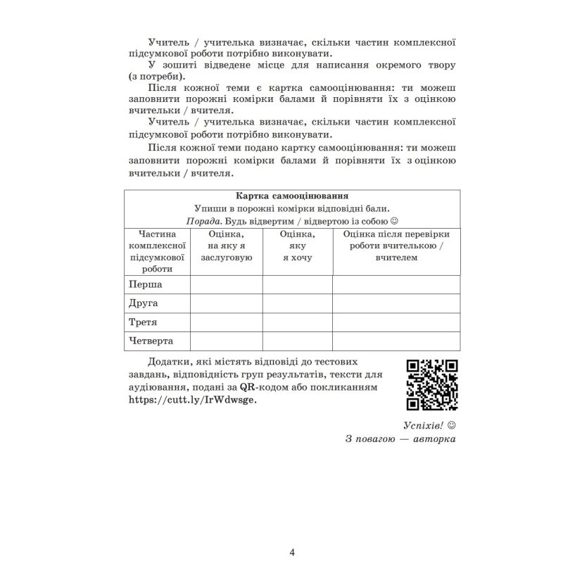 Издание содержит шесть комплексных итоговых работ в четырех вариантах. Кроме того, в каждом варианте отведено место написанию творческих работ.