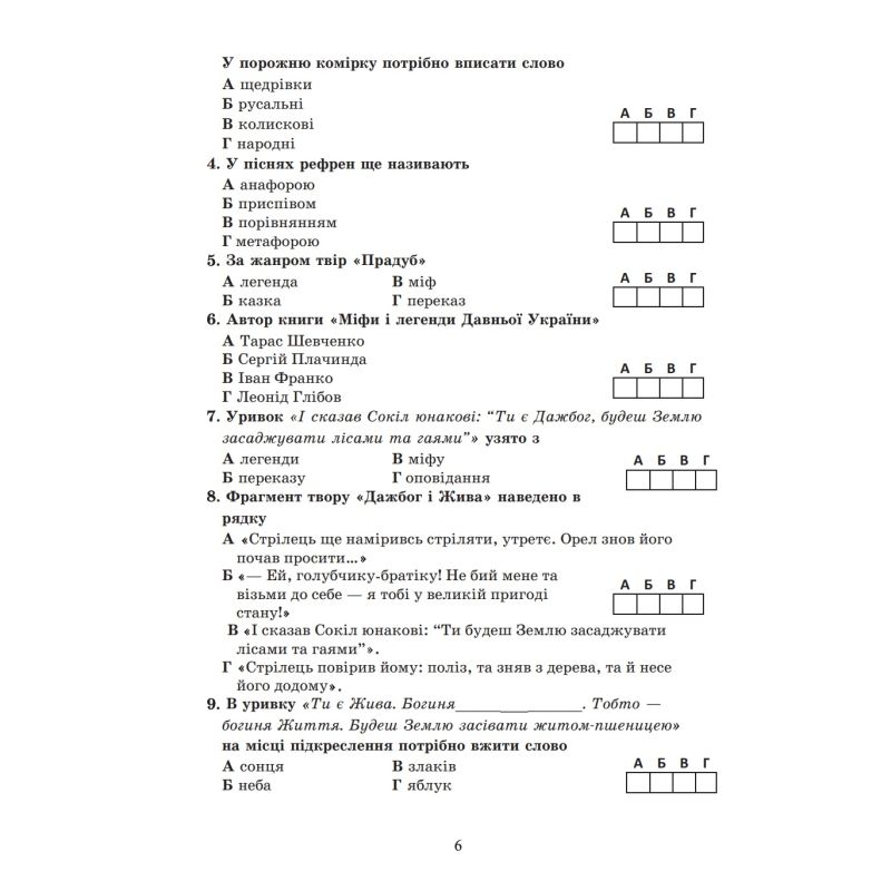 Пособие содержит обучающий материал по украинской литературе в форме тестовых и творческих задач для итогового оценивания.