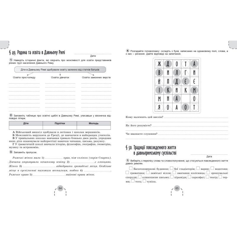 Руководство создано в учебнике «История Украины. Всемирная история» для 6 класса (авторы: Александр Бандровский, Виталий Власов, Оксана Данилевская). В нем содержатся задачи, способствующие усвоению учебного материала, а также четыре диагностические работы в двух вариантах, что в комплексе поможет учителю осуществить как текущий, так и тематический контроль учебных достижений учащихся.