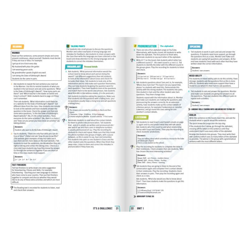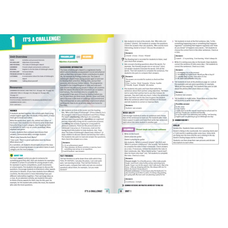 Книга для учителя обеспечивает преподавателей материалами, позволяющими готовиться к занятию с минимальными затратами: содержит пошаговые рабочие программы, рекомендации по каждому занятию, а также ответы и аудиоскрипты.