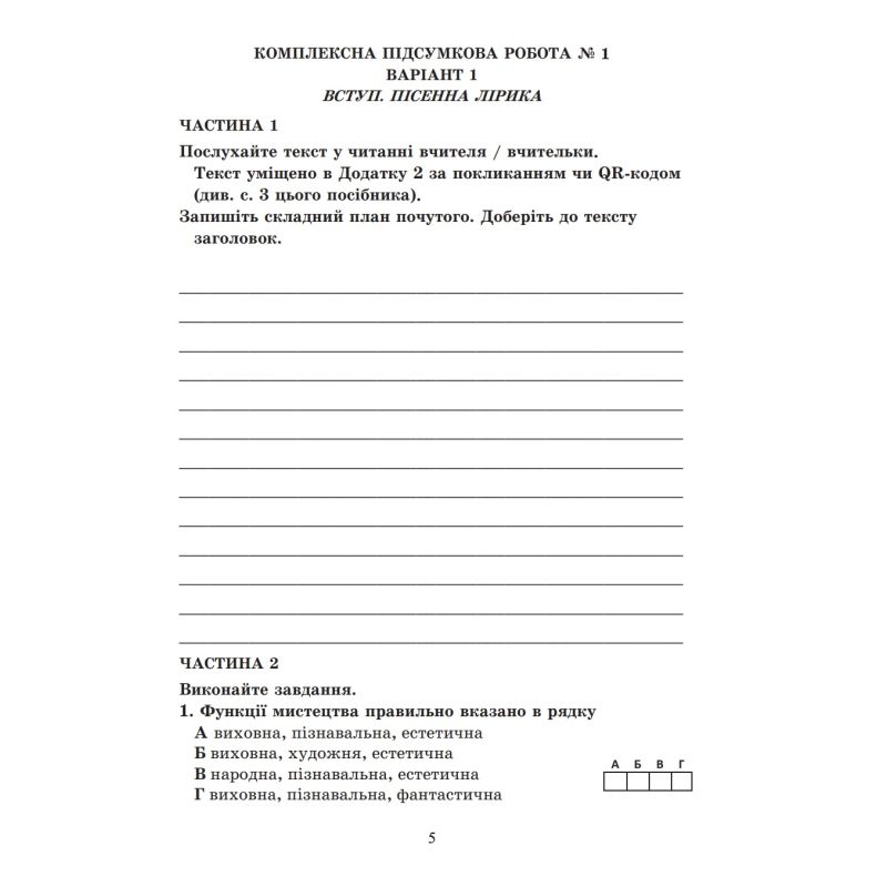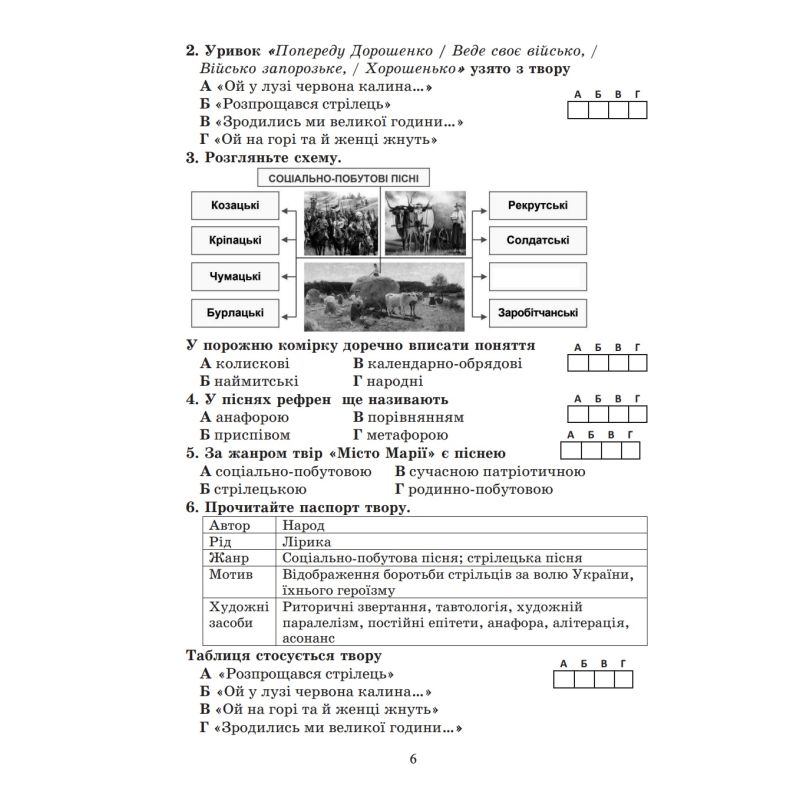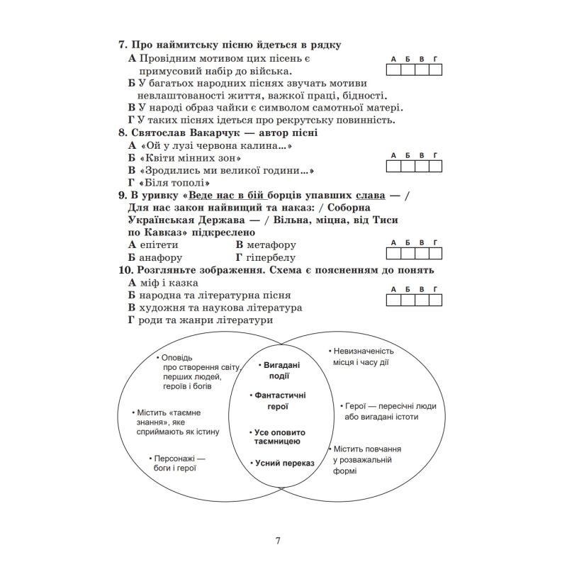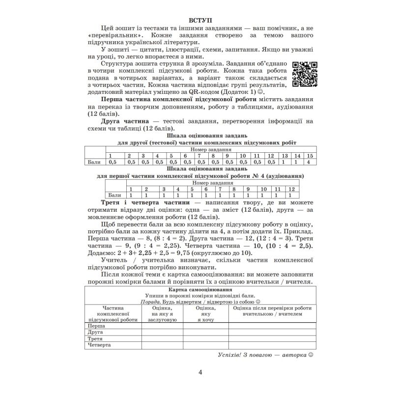 Пособие содержит обучающий материал по украинской литературе в форме тестовых и творческих задач для итогового оценивания.